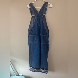 Vintage Y2K Wide Leg Denim Overalls Zebra Trim Boho 90s Vibe