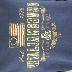 Vintage Williamsburg Virginia spellout logo graphic navy blue & gold casual XL casual travel sweatshirt is in good condition with minimal wear.