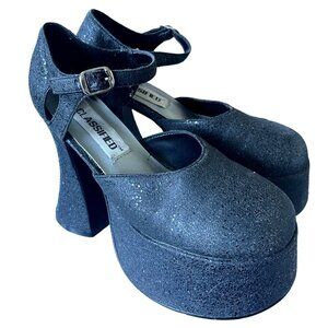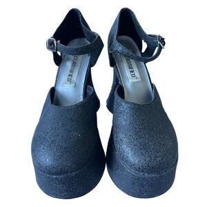 Vintage Y2K Platform SHIMMER Sandals Round Toe Block Heel Black