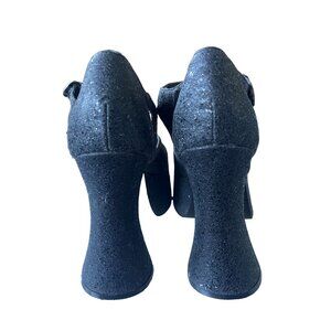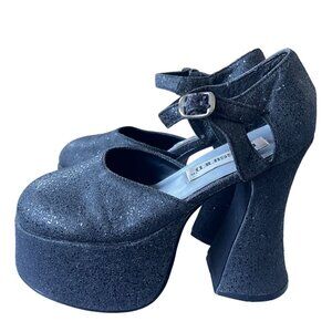 Vintage Y2K Womans 5.5 Platform SHIMMER Sandals Round Toe Block Heel Black 1990s