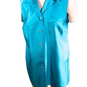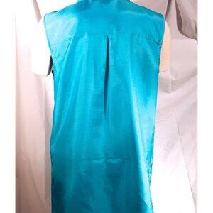 Requirements Aqua Teal Button Down Sleeveless Blouse Career Collared