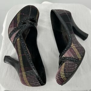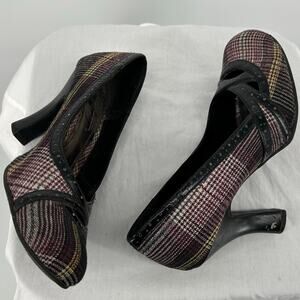 Vintage Y2K Women's 7.5 Bongo Bratz Canvas Plaid Pumps Round Toe Purple Heels