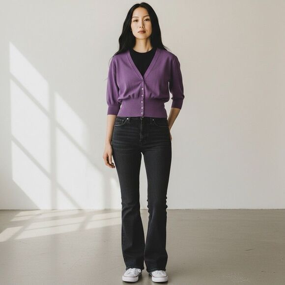 Vintage Y2K Womens Cardigan Bolero Size L Purple Cropped Fitted Preppy Boho