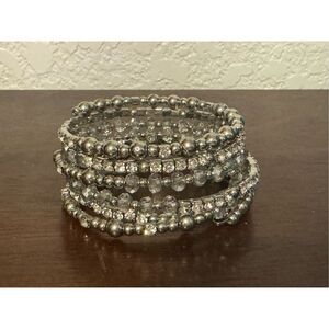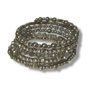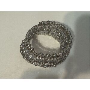 Vintage Y2K Womens Chunky Silver Beaded Rhinestone Slinky Wrap Bracelet Glam 90s