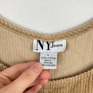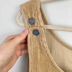 Vintage Y2K Womens L Tan Corduroy Jumper Dress Pockets Academia Preppy Cozy Fall