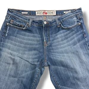 Mid Wash Distressed London Boot Cut Denim Blue Jeans Vintage Y2K