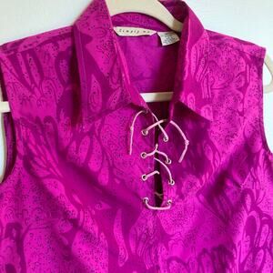 Vintage Y2K Womens M Pink Lace Up Collared Crop Top Fairy Grunge Whimsigoth