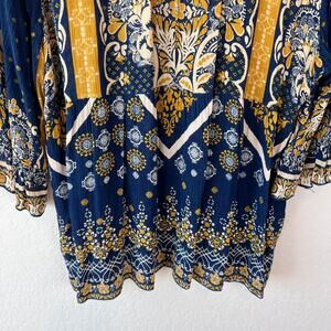 Vintage Y2K Womens Plus size 3X Blouse Floral V-Neck Blue Flowy Whimsygoth