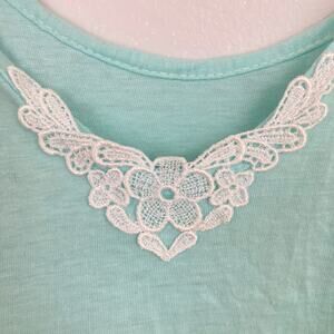 -lightweight green tank top with dainty lace contrast trim at neckline