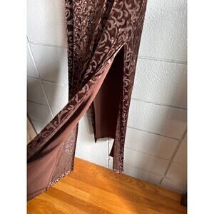 Vintage Y2K Women's Velvet Burnout Gothic Glam Cocoa Split Hem Maxi Dress size S