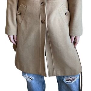 Vintage Y2K Womens Wool Blend Tan Mid Length Minimalistic Trench Coat Sz M
