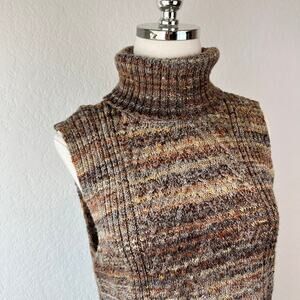 Vintage Y2K Wool Turtleneck Sleeveless Mini Sweater Dress size XL Striped Brown