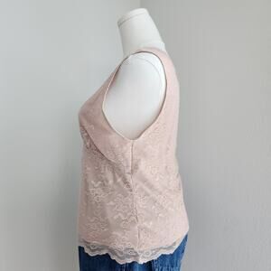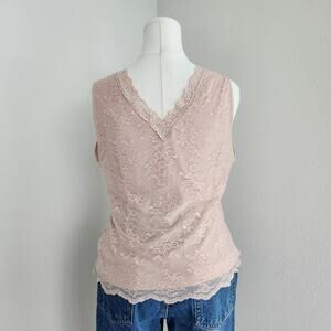 In excellent vintage condition, a Y2K era Worthington stretch pale pink lace sleeveless tank top in size XL.