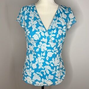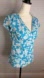 Vintage Y2K Wrapper Tropical Hawaiian Blouse Teal Blue White Floral Wrap Top