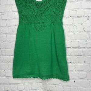 Vintage Y2K XOXO Juniors Size M Green Crochet Knit V Neck Cap Sleeve Summer Top