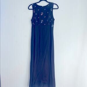 Vintage Y2K XOXO satin flower embroidered empire waist sleeveless maxi dress 5