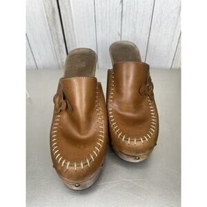 Vintage Y2K Xhilaration Brown Leather Flower Wood Chunky Clog Sandal Size 7.5