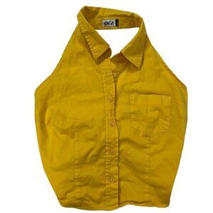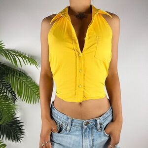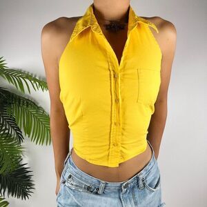 Vintage Y2K Yellow Casual Preppy Sleeveless Collared Summer Halter Crop Top / M