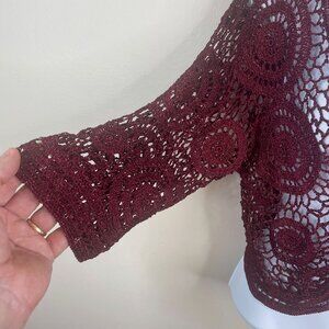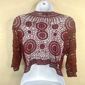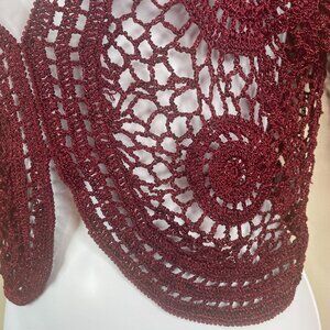 Vintage Y2K Zashi Whimsigoth Fairy Grunge Crochet Bolero Sweater Large Burgundy
