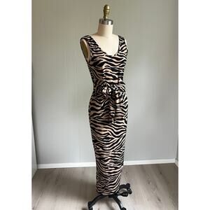 Vintage Y2K Zebra Print Knit Bodycon Maxi Dress Tag Large Fits Small Mob Wife