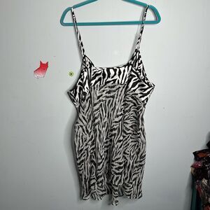 Vintage Y2K Black & White Zebra Print Satin & Sheer Lingerie Nightgown Dress - Plus Size 22/24. In very good preowned condition, no flaws.