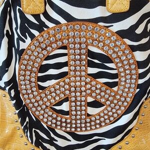 Vintage Y2K Zebra Print with Rhinestone Peace Sign