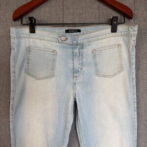 Vintage Y2K bebe Made in USA Low Rise Boot Cut Light Blue Wash Jeans Size 31 Tall