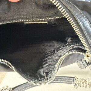Vintage Y2K black Prada Saffiano Tessuto Nylon-Leather Bag w/chain