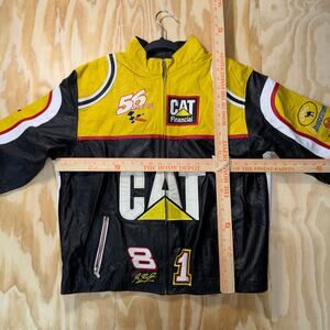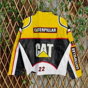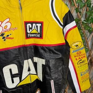 Vintage Y2K caterpillar embroider leather 90s NASCAR jacket