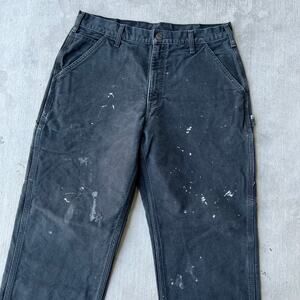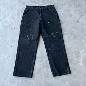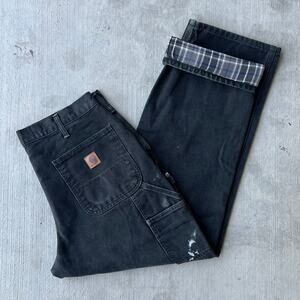 Vintage Y2K faded black carhartt flannel lined work wear carpenter pants. Awesome faded pair. Measure 33x30 and a 9.25 leg opening. Please check measurements before purchasing. I do my best to show any flaws in pictures. Quick shipping! Bundles encouraged!
