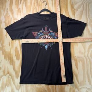 Vintage / Y2K heretic 13 ed Hardy style Christian audigier style rose, flowers, skull heart, dagger, sword, angel, wings, tattoo style, black T-shirt, 2000’s era grunge, Mall goth essential