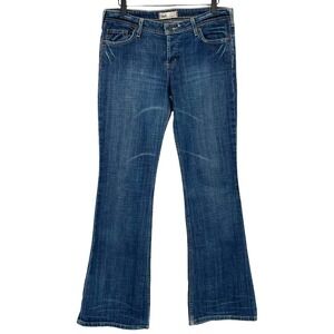 Vintage Y2K l.e.i. low rise flare leg jeans. Medium wash blue stretch denim with natural distressing. Very X-Tina / Brittany Spears.