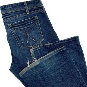Vintage Y2K l.e.i. Low Rise Flare Leg Stretch Jeans Medium Wash Distressed | 9