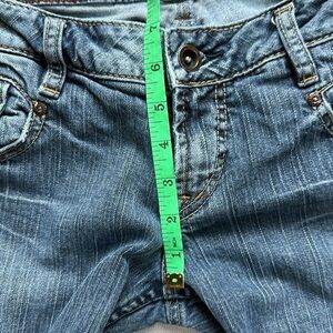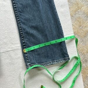 Great Preowned condition. Low rise. Slight wide leg. Tag says inseam is 32 but my measurements show 31. Please confirm measurements approximate laying flat in photos as Poshmark does not honor returns for fit issues. Please scroll down to see all twelve pictures and one video. Thank you for looking.