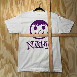Vintage / Y2K neff skate/surf big face cartoons smiley face logo spell out jumbo print 2000s/10s era white T-shirt, essential hip-hop style