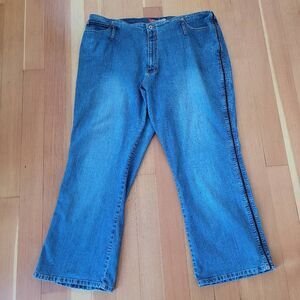 Vintage Y2K size 26 lazer jeans flared with black stripe details on the side of either leg. In excellent pre owned condition with no signs of damage or wear as shown in photos.