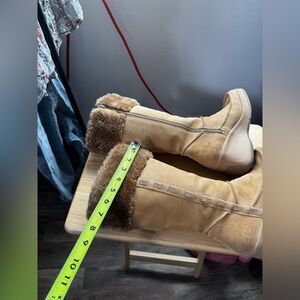 Vintage Y2K sketcher tan suede platform boots square toe with faux fur size 7.5