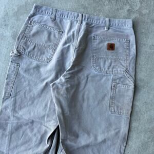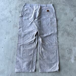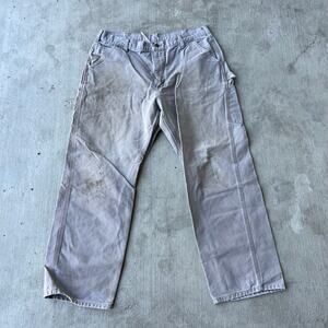 Vintage Y2K stained carhartt work wear carpenter pants. Cool pair have some staining though. Measure 36x30 and a 9.75 leg opening. Please check measurements before purchasing. I do my best to show any flaws in pictures. Quick shipping! Bundles encouraged!
