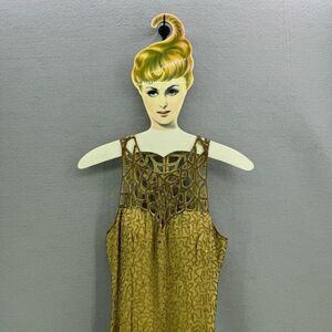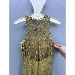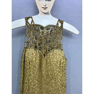 Vintage Y2K 90s Scala Gold Beaded Silk Slip Maxi Dress Gown Size S