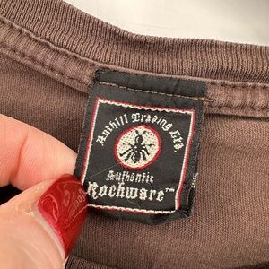 Vintage Y2K ACDC Can't Stop Rock N Roll Band T-Shirt Large Brown Destroyed AC/DC