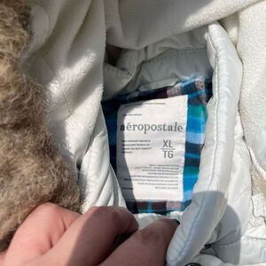 The shiny white puff, faux fur-trimmed hood, and cropped fit are straight from a 2006 Delia’s catalog or an Abercrombie winter drop. It’s giving “hot chocolate after ice skating with your crush” or “posing in the school parking lot in UGGs and a flip phone.”