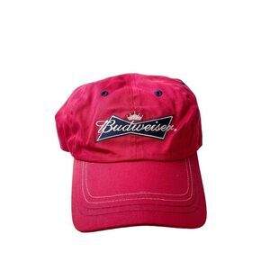Vintage Y2K Budweiser Hat Red Canvas Embroidered Logo Adjustable Ball Cap