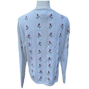 Vintage Y2K Natural Reflections White Floral Embroidered Cardigan Sweater. Size Medium. Measures 20” P2P and is 25” long from shoulder to hem. 55% Ramie/45% Cotton. This sweater is in excellent preowned condition with minimal wear. No stains, pulls,holes or flaws.