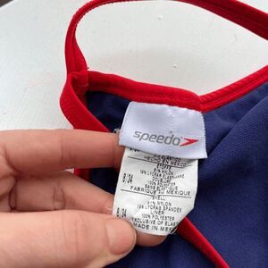 Vintage Y2K Speedo Lifeguard Swimsuit 8/34 Strappy One-Piece 90s Red Navy