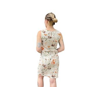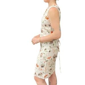 Vintage Y2K Womens 100% Linen Poppy Floral Mini Boho Dress Cardigan Set Sz 36