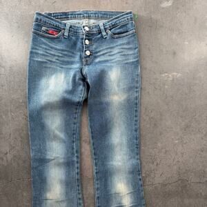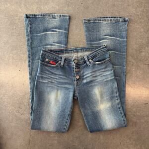 Vintage Y2k 2000's Low Rise Flare Wide Leg Two Tone Denim Jeans Size 28