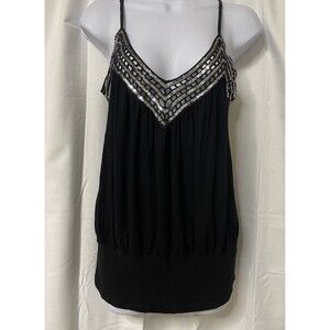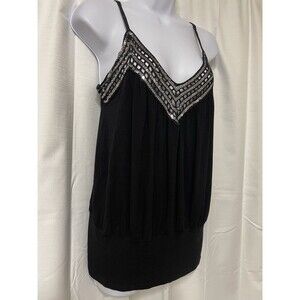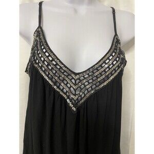 Vintage Y2k 90s Kaity Sz 1X Black Rayon Fairy Tank Top Boho