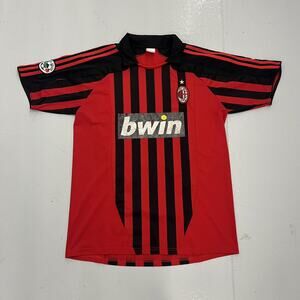 Vintage Y2k AC Milan Red/Black Striped Boot Soccer Jersey
