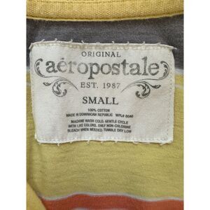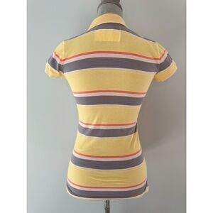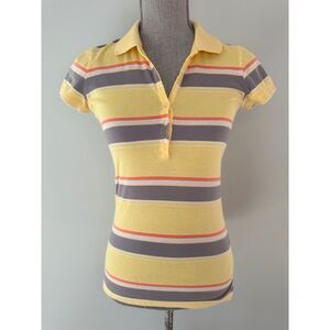Vintage Y2k Aeropostale Yellow Gray Orange Striped Collared Polo Shirt Small