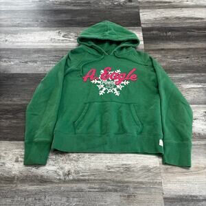 Vintage Y2k American Eagle Green Womens M Spellout Logo Snowflake Fleece Hoodie